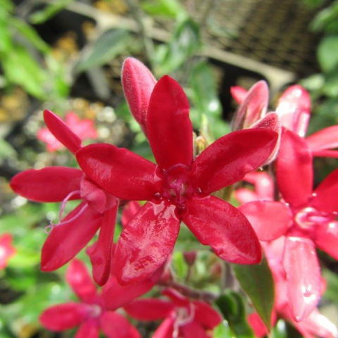 秋より出蕾し、5月に開花。 赤花、高さ2〜3m、銀灰色葉。 クリスマスツリーとしても考えられる、-10℃。 |